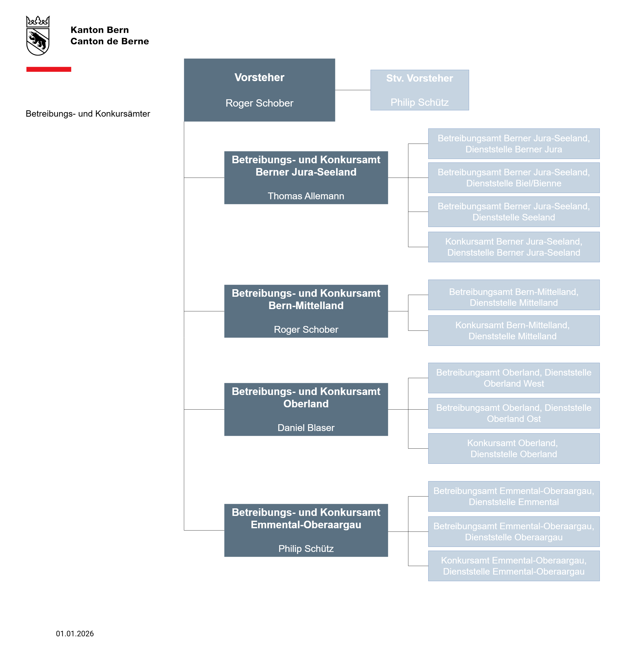 Die Betreibungs- und Konkursämter des Kantons Bern sind in vier Verwaltungsregionen eingeteilt:
